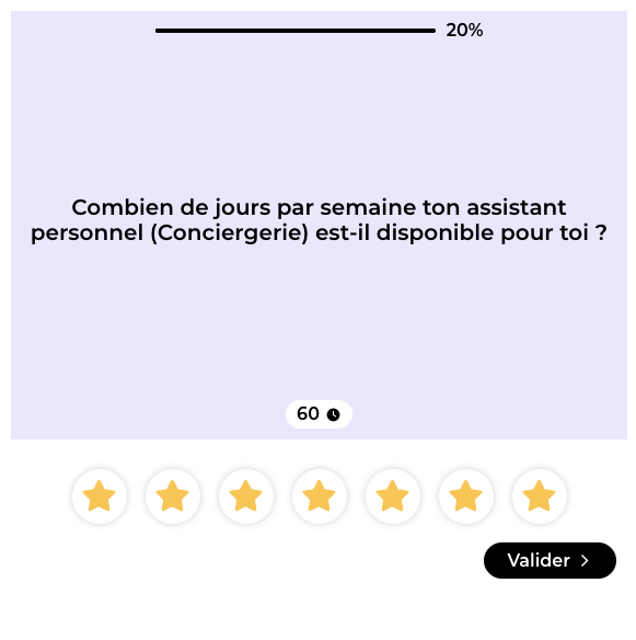 Utilisez un système d’étoiles pour transformer votre quiz en outil de sondage interactif. Ce mode vous permet de mesurer instantanément l’attrait pour un produit, la satisfaction après une vidéo ou l’intérêt pour une thématique, tout en restant dans une dynamique de jeu.