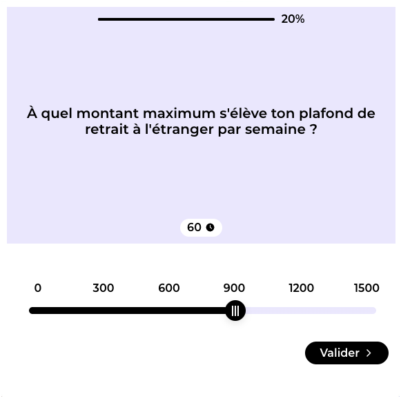 Apportez de la manipulation physique au quiz. Les utilisateurs font glisser un curseur sur une règle pour estimer une «température», un prix, une date ou une quantité. C’est une manière très visuelle et engageante de traiter des données chiffrées.